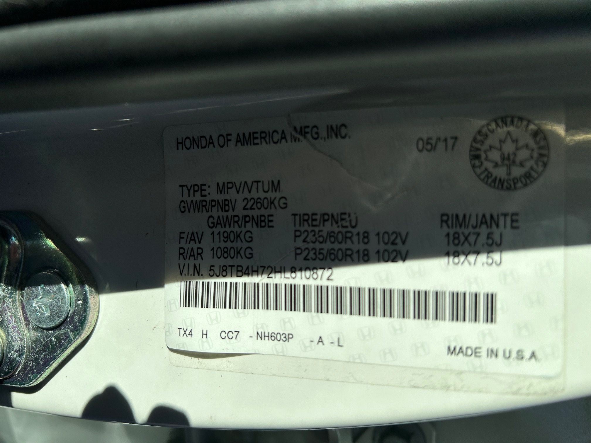 VIN: 5J8TB4H72HL810872